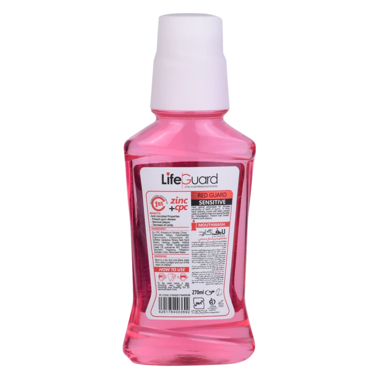 دهانشویه بزرگسال حساس (Red Guard) برند لایف گارد life goard با حجم 270 میلی لیتر