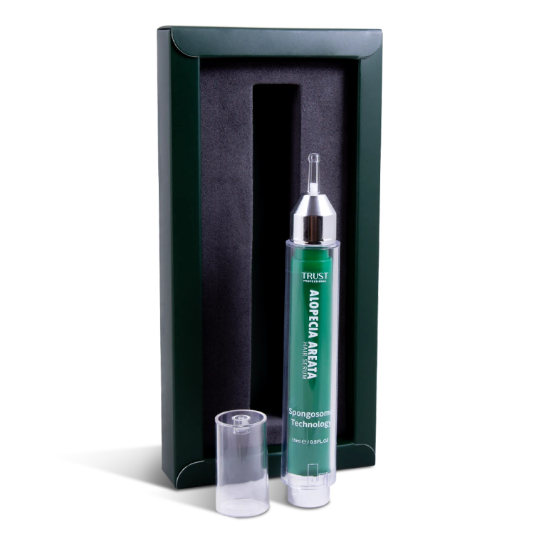 ریزش سکهای بیماری است که به دلیل نقص سیستم ایمنی ایجاد شده و منجر به ریزش موها در نواحی مختلف بدن به ویژه در ناحیه سر و صورت از جمله ریش و سبیل میشود. ریزش سکهای همانطور که از نام آن مشخص است در نواحی کوچک و به صورت سکهای ایجاد شده و ممکن است به فرم خفیف تا پیشرفته افراد مختلف را درگیر کند. بهبود بیماری و برطرف شدن علایم در افراد مختلف متفاوت است و به شدت بیماری و نوع محصولات مراقبتی مورد استفاده بستگی دارد. یکی از راهکارهای اصلی برای بهبود علایم ریزش سکهای و بهبود ریزش مو استفاده از محصولات مراقبتی و سرمهایی است که به رشد مجدد موها کمک کرده و از پیشرفت ریزش مو جلوگیری میکنند. سرم بهبود دهنده ریزش موی سکهای تراست، با دارا بودن تکنولوژی منحصر به فرد اسپانجوزوم، به طور موثری نفوذ ترکیبات موثره ضد التهاب و محرک رویش مجدد فولیکولهای مو را به سلولهای پوست سر افزایش داده و به طور چشمگیری موجب بهبود رشد فولیکول و تحریک رشد موها در این ناحیه میشود. این محصول فاقد ماینوکسیدیل و الکل بوده و ترکیبات موثره مورد استفاده در آن، فولیکولهای مو را تغذیه و خونرسانی کرده و با ترمیم فولیکولهای آسیب دیده، به از بین بردن و بهبود ریزش سکهای مو کمک میکنند.