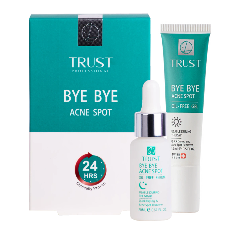کیت آنتی آکنه فوری تراست با قابلیتهای زیادش به رفع سریع آکنه روی پوست صورت شما کمک میکند. این سرم و ژل، همچنین چربی پوست را با لایهبرداری ملایم در آن ناحیه کاهش میدهند.