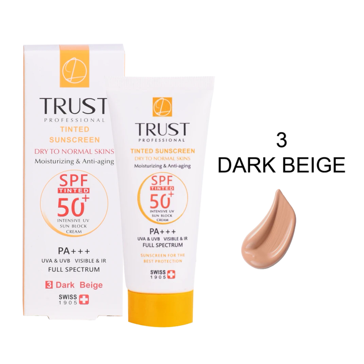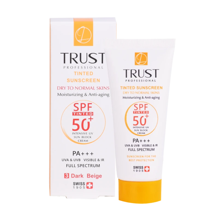 کرم ضد آفتاب تراست trust رنگی و ضد پیری بژ تیره (پوست خشک تا نرمال) (2024)