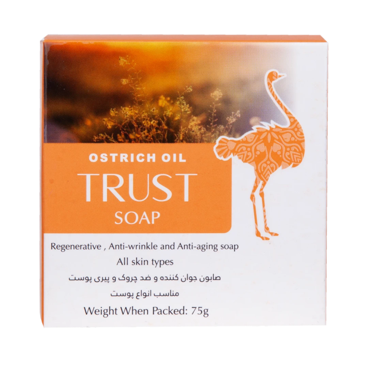صابون عصاره شترمرغ تراست trust روشن کننده و ابرسان پوست