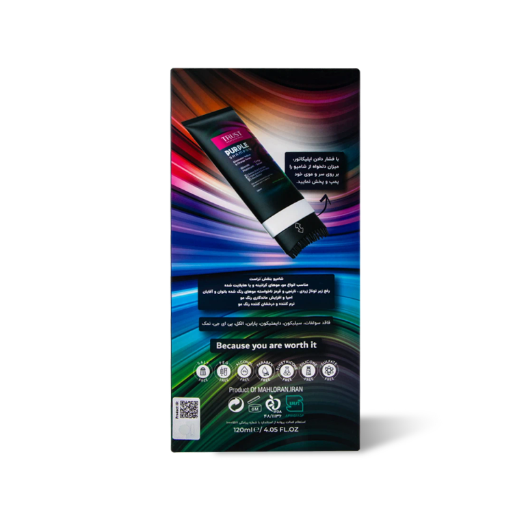 روش مصرف: هفته ای یکبار شامپو بنفش تراست را بر روی موهای خیس ماساژ داده و اجازه دهید تا پنج دقیقه آغشته بماند سپس با آب بشوئید. پیشنهاد می گردد هنگام مصرف از دستکش یکبار مصرف استفاده شود.
