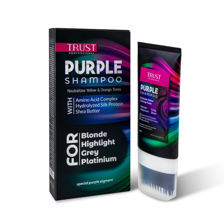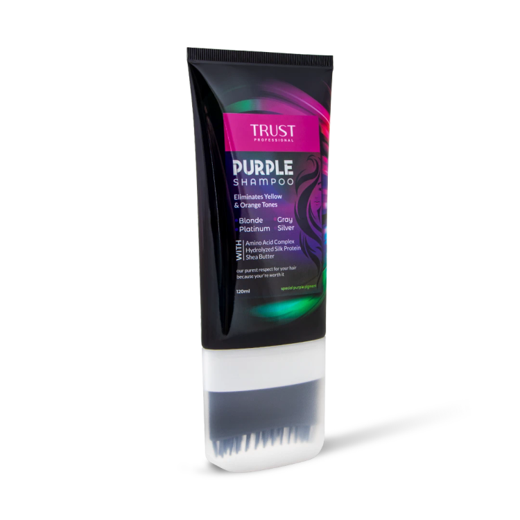 شامپو بنفش تراست trust رفع زیر تناژی زرد و نارنجی